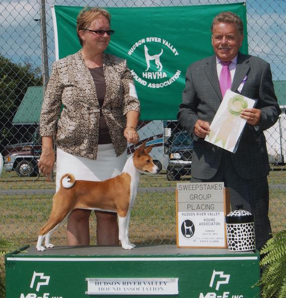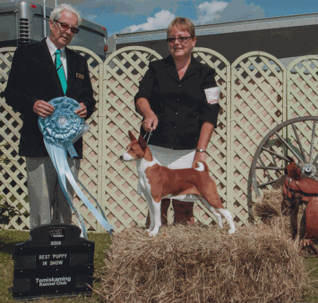 Candy started her show career with a bang, winning 2pts at her first show in Lima, Ohio and following up the next day with a 5pt major under breed specialist Katie Campbell. Back in Canada, she won 2 puppy hound groups and a best bred by exhibitor in show. On her next trip to the US, this time to New York, she was Best in Sweeps at the Hudson River Valley Hound Show under breed specialist Mike Work. 2 weeks later she was back, winning a 4pt major with another 2pts the next day. She then quickly finished her Canadian title, and in 6 shows picked up 3 BOBs, 4 BPs, a G2, G3 and G4, 3 hound puppy group wins and a BPIS. Candy has now won 6 puppy groups and was recently BOS and Best Canadian Bred at the Basenji Club of Canada regional specialty. In the space of just two months, she was the No. 4 Basenji in Canada. At the National Specialty in Abbotsford, BC, Candy was Best in Sweeps, then followed up with an Award of Merit and Best Canadian Bred under breed specialist Kathy Britton.